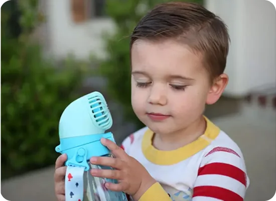 Detachable fan with 3 speeds. Lets your child cool down with a gentle breeze while they drink.
