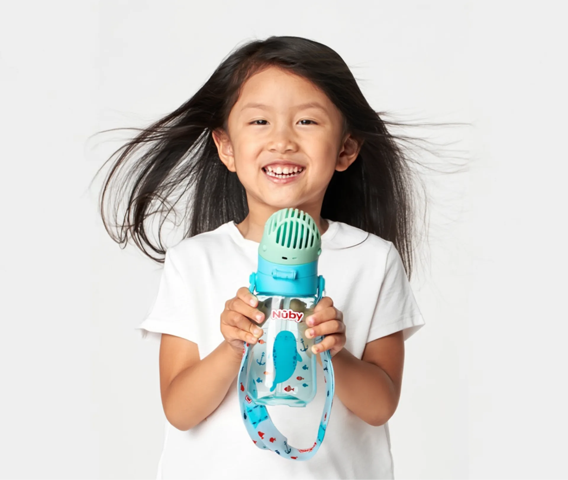 We know keeping them cool and hydrated is a constant battle. The Nuby Fan Bottle turns drink time into funtime, making sure your child stays happy and healthy, even under the blazing sun.